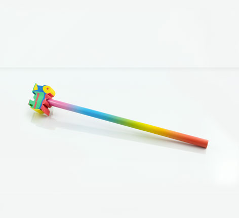 farbig lackierter Holzbleistift mit einer Mine und Lok Radiergummi