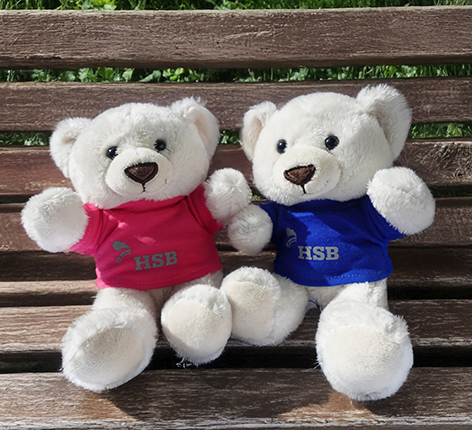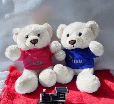 Der Bär trägt ein hübsches T-Shirt, das in den Farben Rosa oder Blau erhältlich ist.